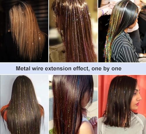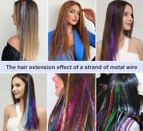 Tinsel Hair Extensions: 48 inch are long enough; cut into different length according to your hair extension requirements; making you more shiny; beautiful and eye-catching to be a glitter goddess