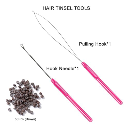 【1200 Strands Hair Tinsel with Tool】Fun and Popular Choice in 2024. 1200 Strands 48″ Silver Tinsel Hair Fairy Hair Tinsel and micro silicone link rings beads, 2 Hook, enough for you to use, come on choose your favorite color.