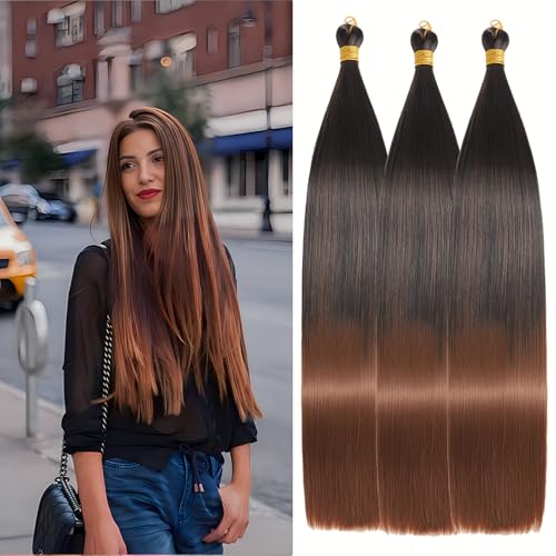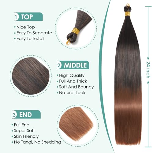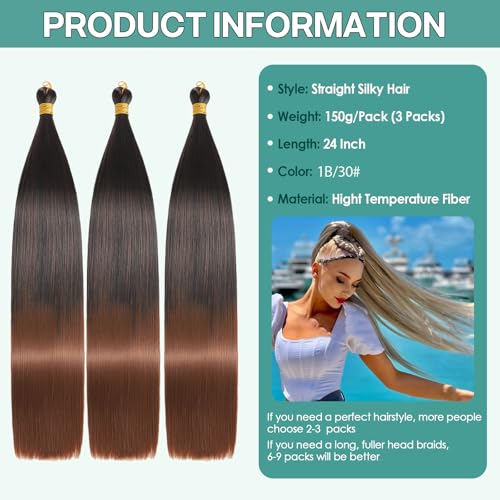 24 Inch Bone Straight Braiding Hair 3 Packs Straight Hair Extensions Synthetic Crochet Braids Hair Extensions Silky Pre Stretched Braiding Hair (1B/30, 24 Inch 3 Packs)