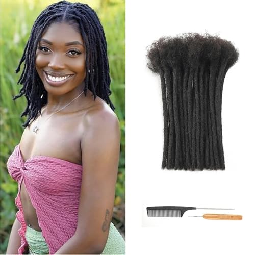 Full Handmade Dreadlock Extensions Human Hair ,Locs Extensions Real Human Hair, Natural Black for Women Men Kids (#1B, 0.8cm 4Inch/30 locs)