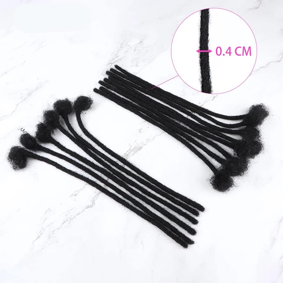Loc Extension Human Hair 0.4cm Width 6inch 40 Strands 100% FUll Handmade Permanent Dreadlock Extension Human Hair for Women/Men/Kids Can Be Dyed Bleached Curled (Width 0.4cm Natual Black)