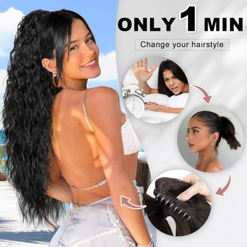 ❤【Easy to Wear】–With our ponytail extension, all you do is simply open the claw comb at the top of the ponytail and clip the hair extension over your own bun or ponytail. It takes one step to put our ponytail extension into your hair and is effortless!
