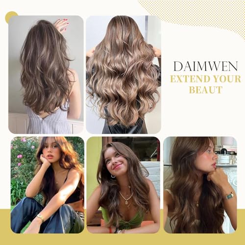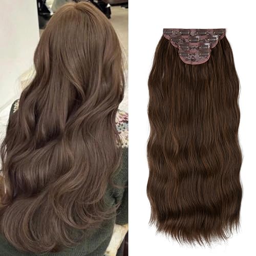 Hair Extensions Long Curly Hair for Women Wavy Clip in Hair Extensions 4 Piece Set 20 Inch Synthetic Hair (Light Brown)
