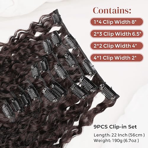 LONAI Hair Extension,9PCS Brown 22″ Curly Clip in Hair Extensions LN002 Long Soft Thick Synthetic Hairpieces for Women-Dark Reddish Brown