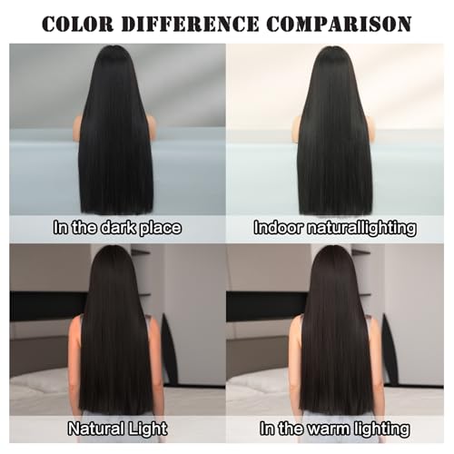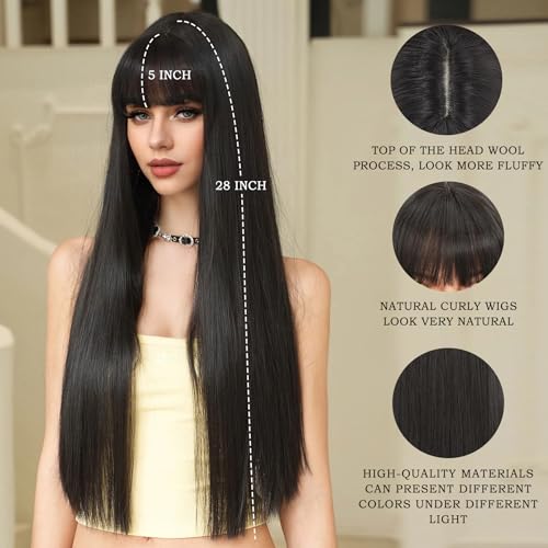 ★【Ultra-realistic Wigs】The fashion natural black long straight wig adopts the front bangs design, which perfectly covers the hairline, helps you create a truly natural makeup, perfectly fits the skin, and makes the long layered cut synthetic straight wig look more natural and lifelike.The long wig with bangs design makes this wig a popular look.