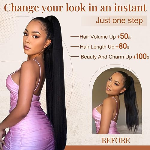 💖[Easy to Wear] To wear this ponytail extension, you only need to wrap your hair into a bun, clip it on, and tighten the drawstring, and the style is ready, and very simple. Very stable and comfortable to wear all-day