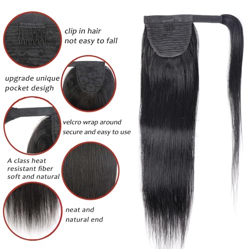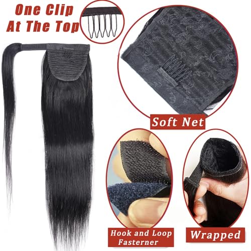Straight Long Ponytail Extension Human Hair with Magic Paste Warp Around Human Hair Ponytail for Women Real Human Hair Ponytail Extension Natural Color 24 Inch