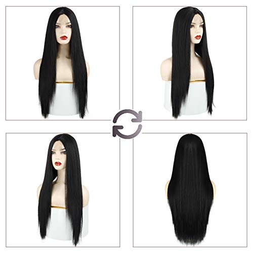 [Wig material]:The black long wig is made of high-quality heat-resistant synthetic fiber. Natural black straight wig suitable for most people. And the soft touch is suitable for all-day to wear it. When you first receive the long straight wig, there may be tangles, you can spray it with a watering can and comb it, it will make the long wig soft again