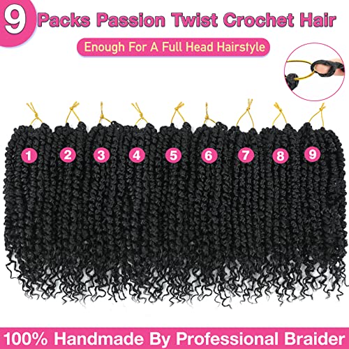 9 Pack Passion Twist Crochet Hair 10 Inch Pre-twisted Passion Twist Hair Pre Looped Boho Crochet Braids Hair for Women Girls and Kids (10Inch,1B)