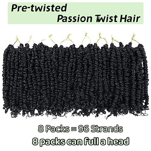 LOSMOEER 8 Packs Passion Twist Crochet Hair 8 Inch Pre-twisted Crochet Passion Twist Hair Pre-looped Crochet Braids Hair for Women Passion Twists Braiding Hair Synthetic Hair Extensions (1B#)