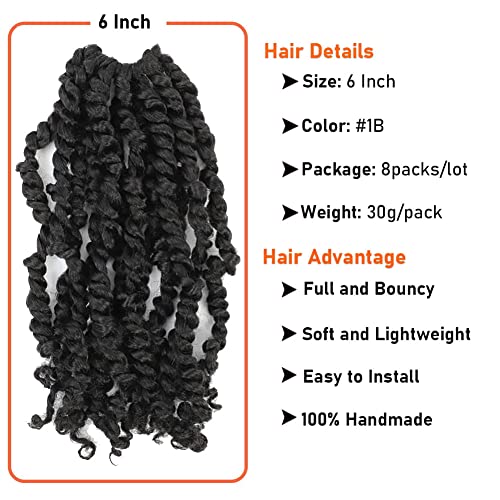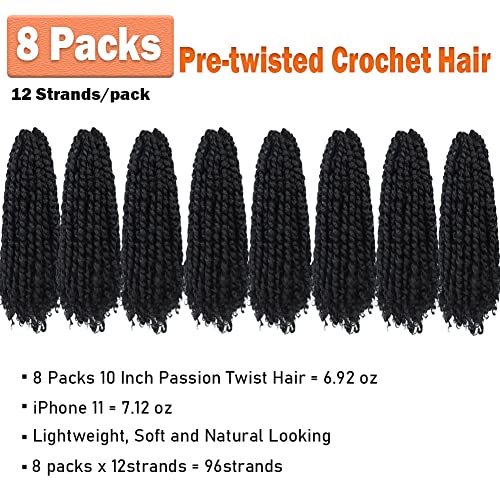 Passion Twist Crochet Hair 6 Inch 8 Packs Pre-Twisted Passion Twist Hair Crochet Hair for Black Women Pre-Looped Crochet Braids Synthetic Crochet Hair Extensions Natural Color