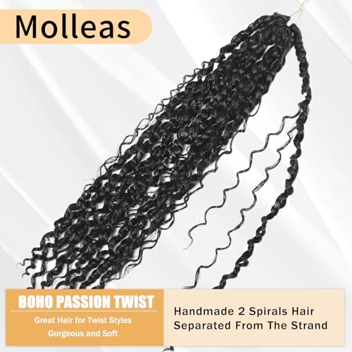 1.Passion Twist Hair Material:Features: Boho Passion Twist Crochet Hair are 100% handmade crochet hair, natural looking, boho twist crochet hair curly ends is every beautiful. Passion twists usually 7-9 packs can full a head. C rochet passion twist hair pre looped and high quality fiber
