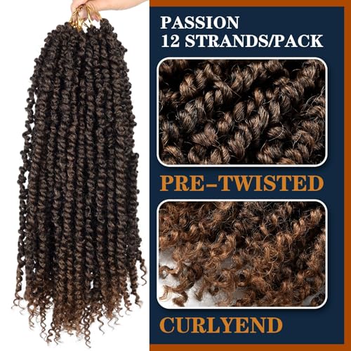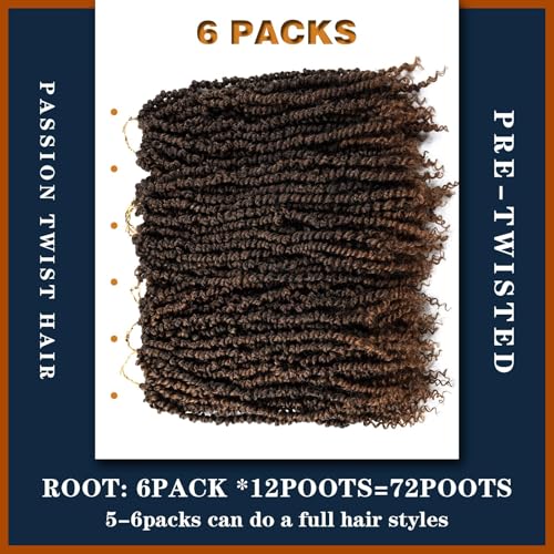Passion Twists Braiding Hair, Crochet Passion Twist(12 Roots per Pack, 6 Packs) Pre-twist Passion Twist Hair for Black Women (18 inch, T30)