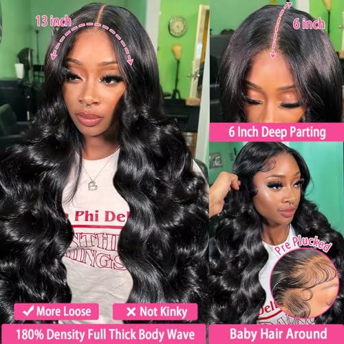【13×6 Lace Front Wigs Human Hair Material】Body Wave Frontal Wigs Human Hair, 13×6 HD Lace Front Wigs for Women, 180% Density Frontal Human Hair Wigs, Full and Thick. 100% Unprocessed Brazilian Virgin Human Hair. Soft and Natural, Healthy and Vibrant, No Dry End, Zero Split Ends, Comfortable Against Skin