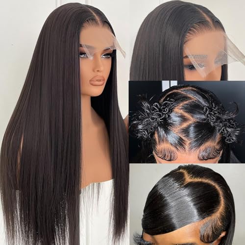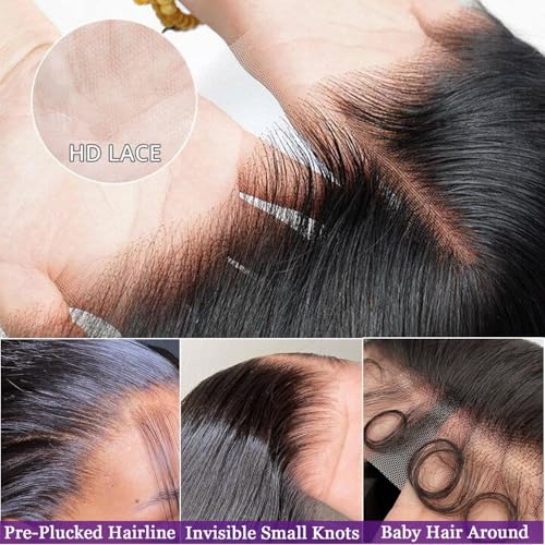 30 Inch 13×6 Lace Front Wigs Human Hair 200 Density Straight HD Lace Front Wigs Human Hair Pre Plucked Glueless Wigs Human Hair for Women Straight Lace Frontal Wigs Human Hair Natural Black