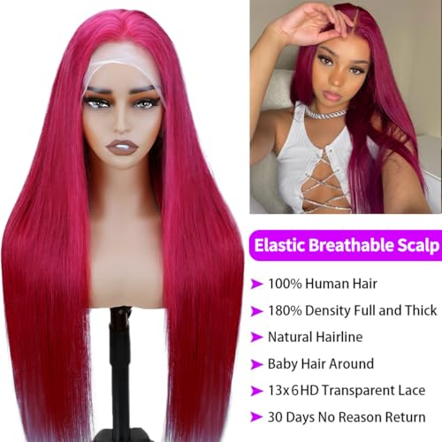30 Inch 99j Burgundy Lace Front Wigs Human Hair 13×6 Hd Transparent Red Lace Front Wigs Human Hair Straight Wigs Human Hair Lace Front Wigs 200% Density Glueless Wigs Human Hair Pre Plucked Pre Cut