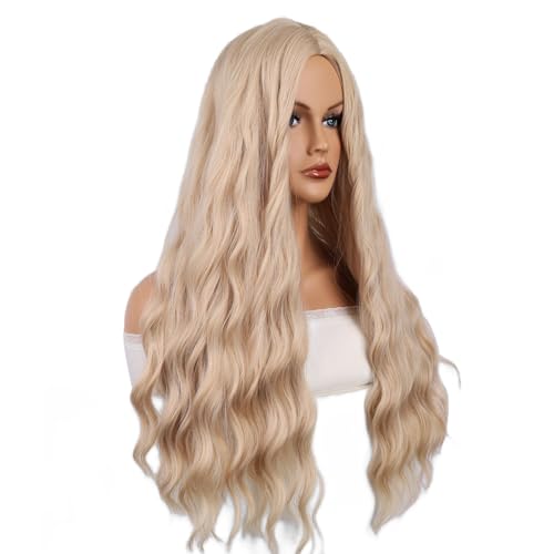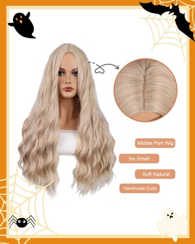 Blonde Wig 26 Inches Wigs for Women Synthetic Wig Long Cosplay Wig Wavy Hair Replacement Wigs for Party Heat Resistant Middle Part