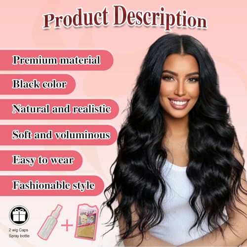 Be the first to review “Long Black Wavy Wig with Lace Hairline 26 Inch Middle Part Curly Wigs for Women Synthetic Heat Resistant Fibers Wig for Daily Wear and Party Use (Black)”