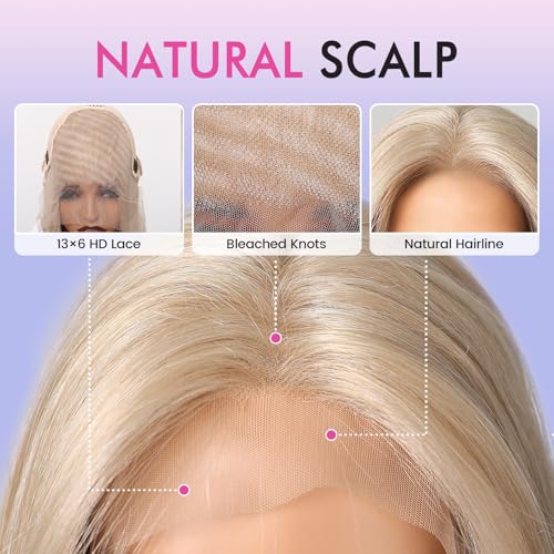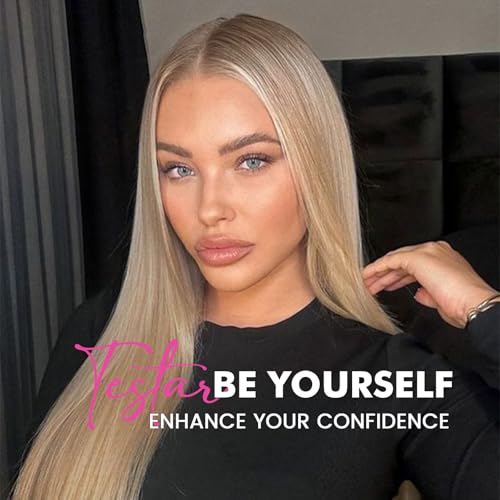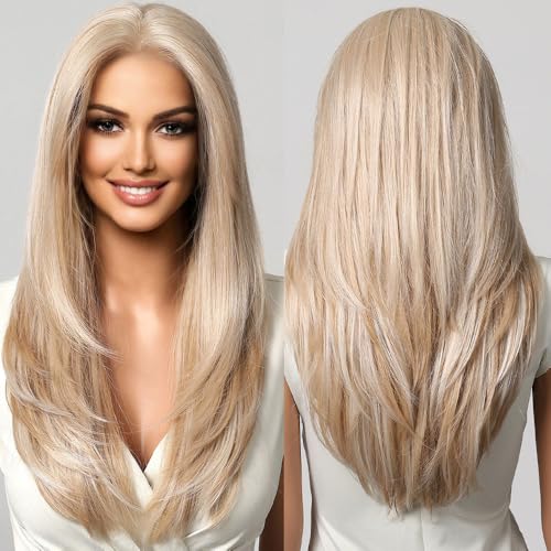 testar 13×6 HD Lace Long Blonde Lace Front Wig for Women 22 Inch Platinum Blonde Wig Straight Hair Natural Layered Glueless Synthetic Lace Wigs Middle Part for Party/Halloween/Daily Use(613 Blonde)