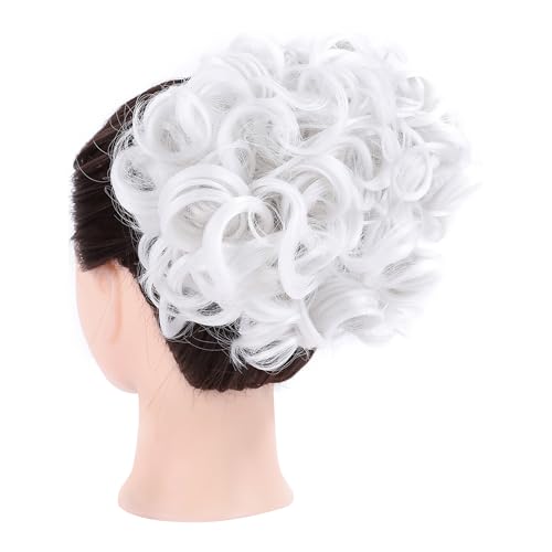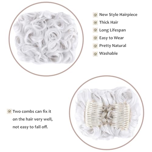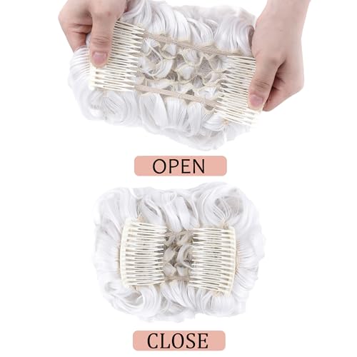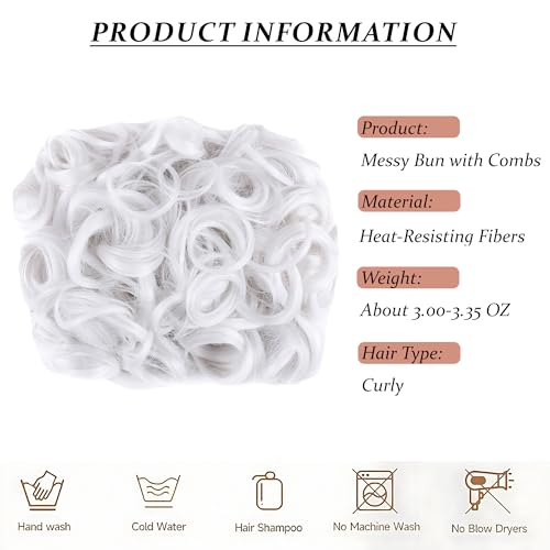 Elaine Combs Messy Bun Hair Piece Curly Dish Hair Buns Extension Thick Chignon Hairpiece Clip in Ponytail Scrunchies Hair Pieces for Women (#White)