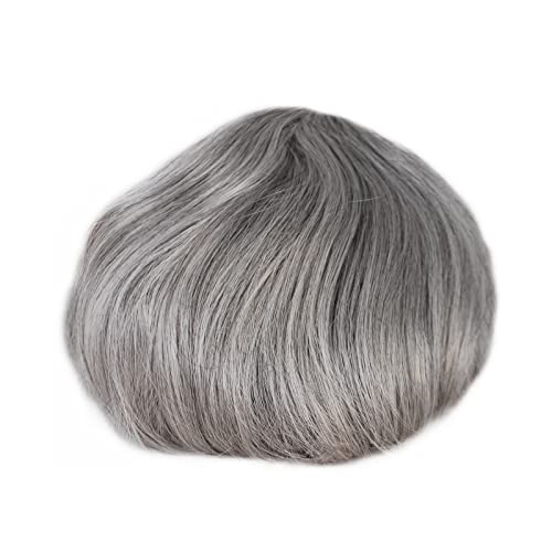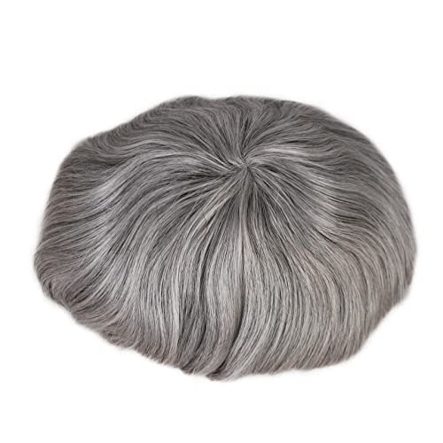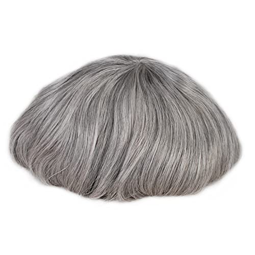 Grey Hair Wigs for Men Black Mixed Mens Grey Toupee Hairpiece Thin Skin Hair Replacement (1B80)