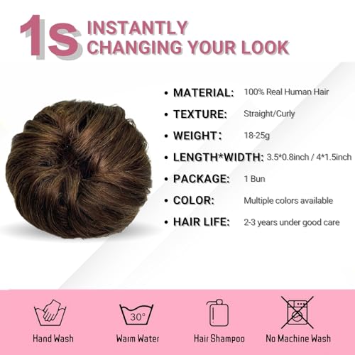 【Easy and Time Saving】Achieve an instant hair updo with our human hair messy bun scrunchie. Simply tie your hair into a ponytail or bun and wrap the easy bun maker for a stylish, laid-back look. Perfect for a quick messy bun or an effortless hair transformation, this hair buns hair piece allows for versatile hairstyles, including high, low, or side buns, for both elegant hair bun and casual styles.