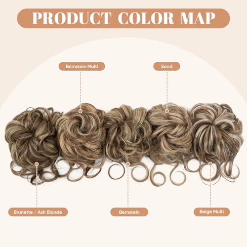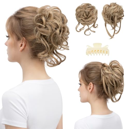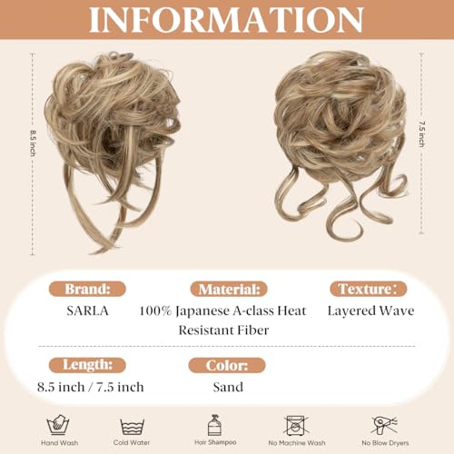SARLA 2PCS Messy Bun Hair Pieces Detachable Claw Clip Wavy Curly Synthetic Hairpieces Fake Scrunchies Updo Ponytail Extension for Women Sand