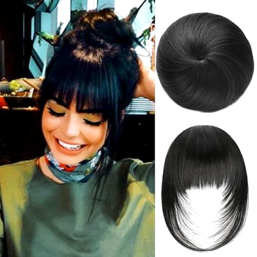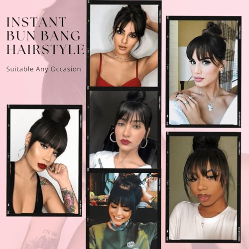 STYLE: Natural hair bun and bangs clip on 2pcs set. Black hair bun clip-on fringe bang hair for women. Natural long fake bang and ballet buns hair piece. Full hair volume with beautiful shape.