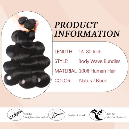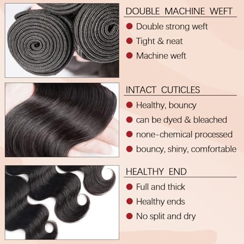 12A Human Hair Bundles 18 20 22 Inch Body Wave Bundles Human Hair 100% Unprocessed Brazilian Virgin Hair 3 Bundles Deals Human Hair Quick Weave Bundles Real Human Hair Extensions Natural Black