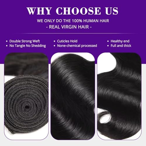 Body Wave Bundles Human Hair Feature: Double Machine Weft for hair bundles. Tight and Neat Weft with High Elasticity, Bouncy and Glossy, Thick And Healthy End. One Direction Cuticle With No Split Ends,Little Shedding, Tangle Free, No Chemical Treatment, No Smelling, No Lices