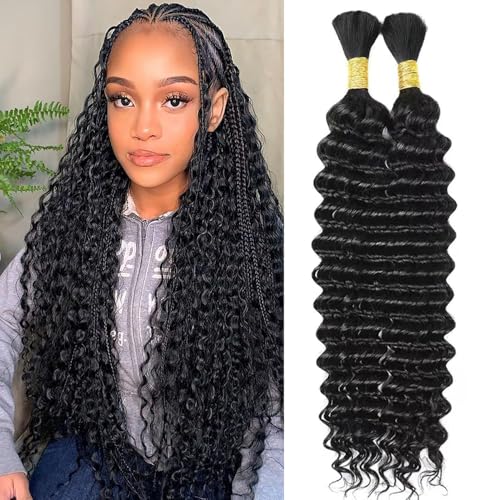Human Hair Boho Braiding Hair Texture: 1B Black Deep Wave Bulk Human Hair for Braiding, Soft and Smooth, Bouncy and Full, Bohemian Hair for Braiding Human Hair, Easy to Install and Blend Perfectly with Your Own Hair