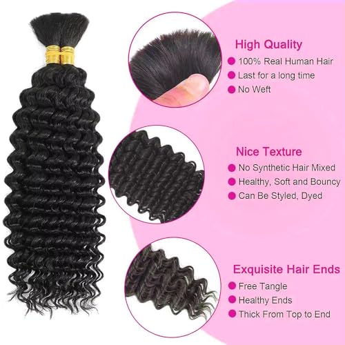 Deep Wave Braiding Hair Material: 100% Unprocessed Brazilian Virgin Human Braiding Hair, No Weft Human Hair Bulk, Soft and Natural, Healthy and Glossy, Comfortable and Lightweight, No Tangle, No Shedding, No Smell