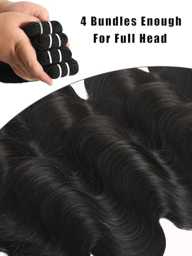 Human Hair Bundles 20 22 24 26 Inch Body Wave Bundles Human Hair 100% Unprocessed Brazilian Quick Weave 4 Bundles deals Human Hair Extensions Natural Black