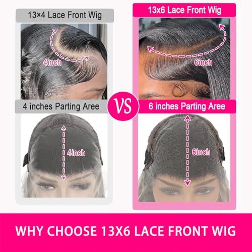 Lace Frontal Wigs Human Hair Lace Detail: 13×6 Ear to ear transparent HD lace front wigs human hair pre plucked, natural hairline with baby hair around, simulated scalp, thin and durable, melt into any skin tone for women.