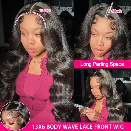13×6 Lace Front Wigs Human Hair 180% Density HD Transparent Body Wave Lace Front Wigs Human Hair Body Wave Glueless Frontal Wigs Human Hair for Women Pre Plucked with Baby Hair Natural Black (26 inch)