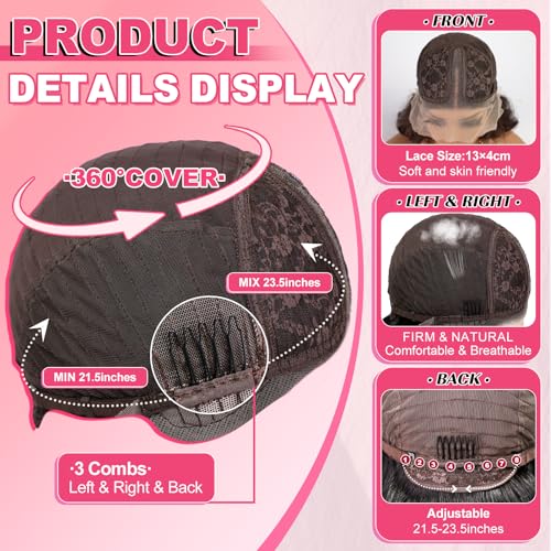 ❤ Hat size: 13×4.5 T-shaped lace front wig, medium hat size (22 inches -23 inches), equipped with 3 combs and adjustable straps, suitable for most people, making you more comfortable and easier to wear.