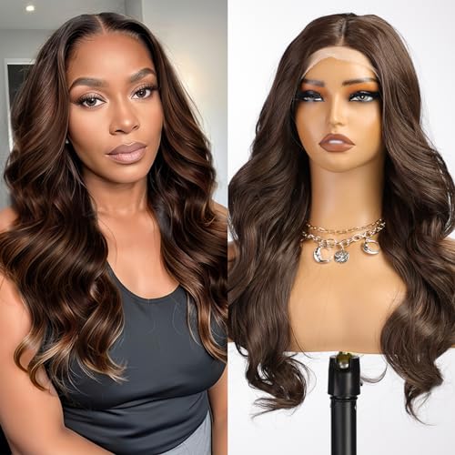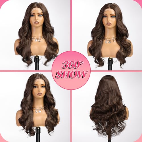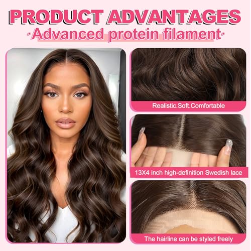 HAIRCUBE 26 Inch Body Wave Lace Front Synthetic Wigs Pre Plucked 13×4 HD Lace Front Wigs for Women, Natural Brown Wigs