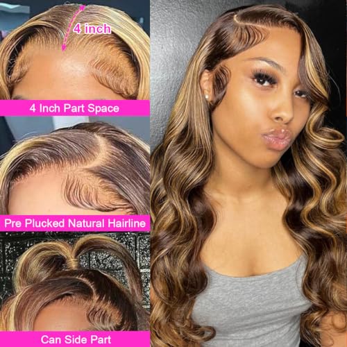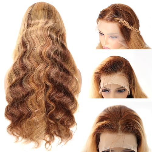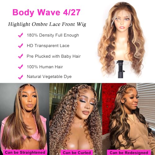 Highlight Ombre Lace Front Wig Human Hair Pre Plucked 4/27 Brown Honey Blonde Body Wave Lace Frontal Glueless Colored Wigs Human Hair 13×4 Hd Transparent Lace Front Wig