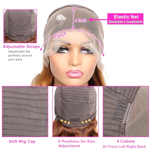 Highlight Ombre 13×4 Body Wave Lace Front Wig Upgrade Your Comfort: This wig boasts 180% density and comes with 4 combs, adjustable straps, and elastic bands for a secure and comfortable fit. The spacious 4×13-inch handwoven area allows you to rock high ponytails and bun hairstyles, boosting your confidence and attractiveness. Compliment Magnet: Get ready to receive compliments!
