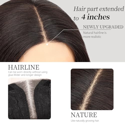 ❤4-inch hand-sewn hairline❤:This synthetic lace front wig with natural hairline,hand-stitched using a new production process.Chocolate brown wig front lace is 2-inch wide,4-inch long.No glue is needed for wearing, avoiding skin damage and providing convenience in wearing.