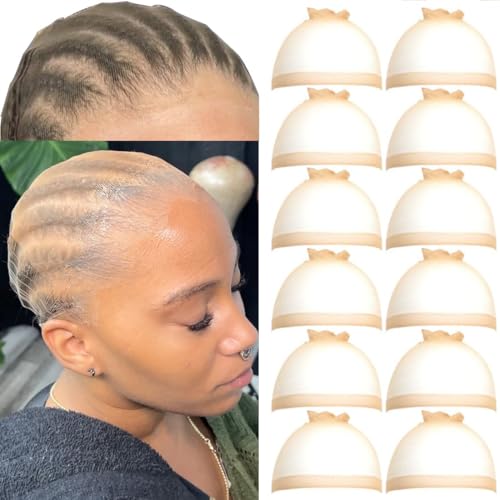 FDBJulyy 12 Pcs Transparent HD Wig Cap,Transparent HD Wig Caps for Women Wig Cap Stocking Cap Sheer Wig Cap Thin Nylon Cap HD Thin Wig Cap for Lace Front Wig Accessories for Women
