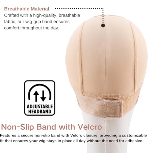 Adjustable Non-Slip Band with Velcro: Features a secure non-slip band with Velcro closure, providing a customizable fit that ensures your wig stays in place all day without the need for adhesive.