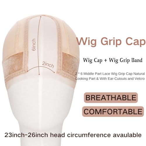 Women Lace Wig Grip Cap – 2×6 Middle Part Lace Area Adjustable Non-Slip Band With Velcro – Wig Gripper Around Lace Edge With Ear-Cutouts Comfortable Breathable No-Headache (LightBrown)