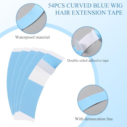 54 PCS Waterproof Lace Front Wig Tape Double Sided Ultra Hold Clear Toupee Tape Strong Adhesive Lace Tape for Hair Pieces Hair Extension and Wigs Toupees Blue 1/2