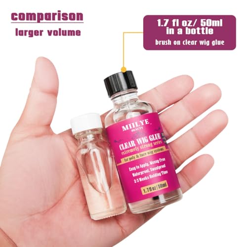 Easy to Use, Mess-free Brush on Clear Wig Glue for Front Lace Wig Waterproof: MIILYE BEAUTY clear wig glue will NOT leave a string of glue everywhere nor get messy during applying, you can enjoy your wig wearing time at ease;