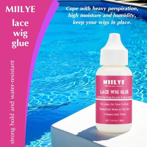 MIILYE Strong Hold Lace Glue is a non-toxic, latex-free safe water-based glue, designed for people with sensitive skin and scalp, providing a superior long lasting hold for lace front wigs and hair systems without damage to your lace, scalp or edges.
