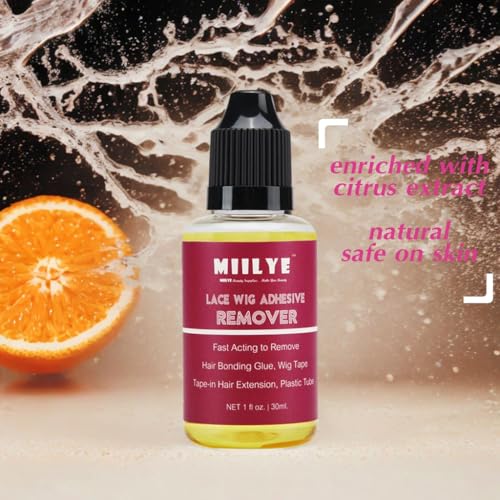 Fast Acting, Clean Removal Lace Wig Glue Remover; MIILYE Glue and Tape Remover can loosen bond between skin and glue/tape adhesive within few minutes, as well as the bond between the tape and lace wig/ tape-in extensions; MIILYE Glue Remover also help to remove glue from the wig edge, let your wig be reusable; It is also easy to shampoo out, just wash hair with a clarifying shampoo after use;