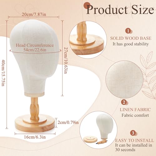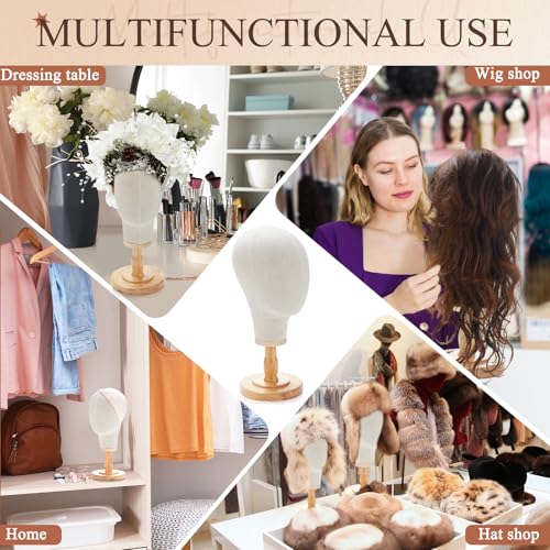 Material Construction: the wig head stand has a robust and durable build, made from inner plastic, outer canvas, and supported by a solid wood base, ensuring it can be applied for the long time; With the design based on the real human head, it provides a nice opportunity to exhibit the effectiveness of wigs and other head accessories