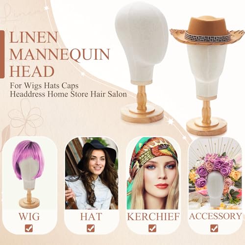 2 Pcs Wig Stand with Head 23 Inch Linen Mannequin Head Stand with Wooden Stand Wig Head Stand Mannequin Head for Hats Canvas Head for Wigs Hats Caps Headdress Home Store Hair Salon