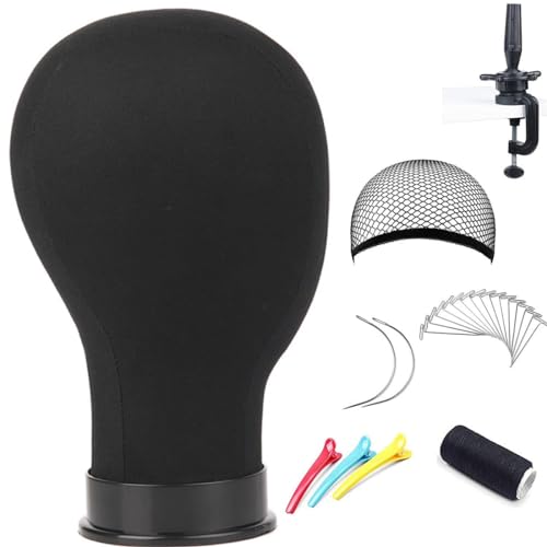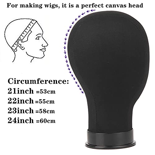 Wig Head Canvas Block Head for Wig Making Display Styling Manikin Head with Stand Mannequin Head with Mount Hole(23inch black)